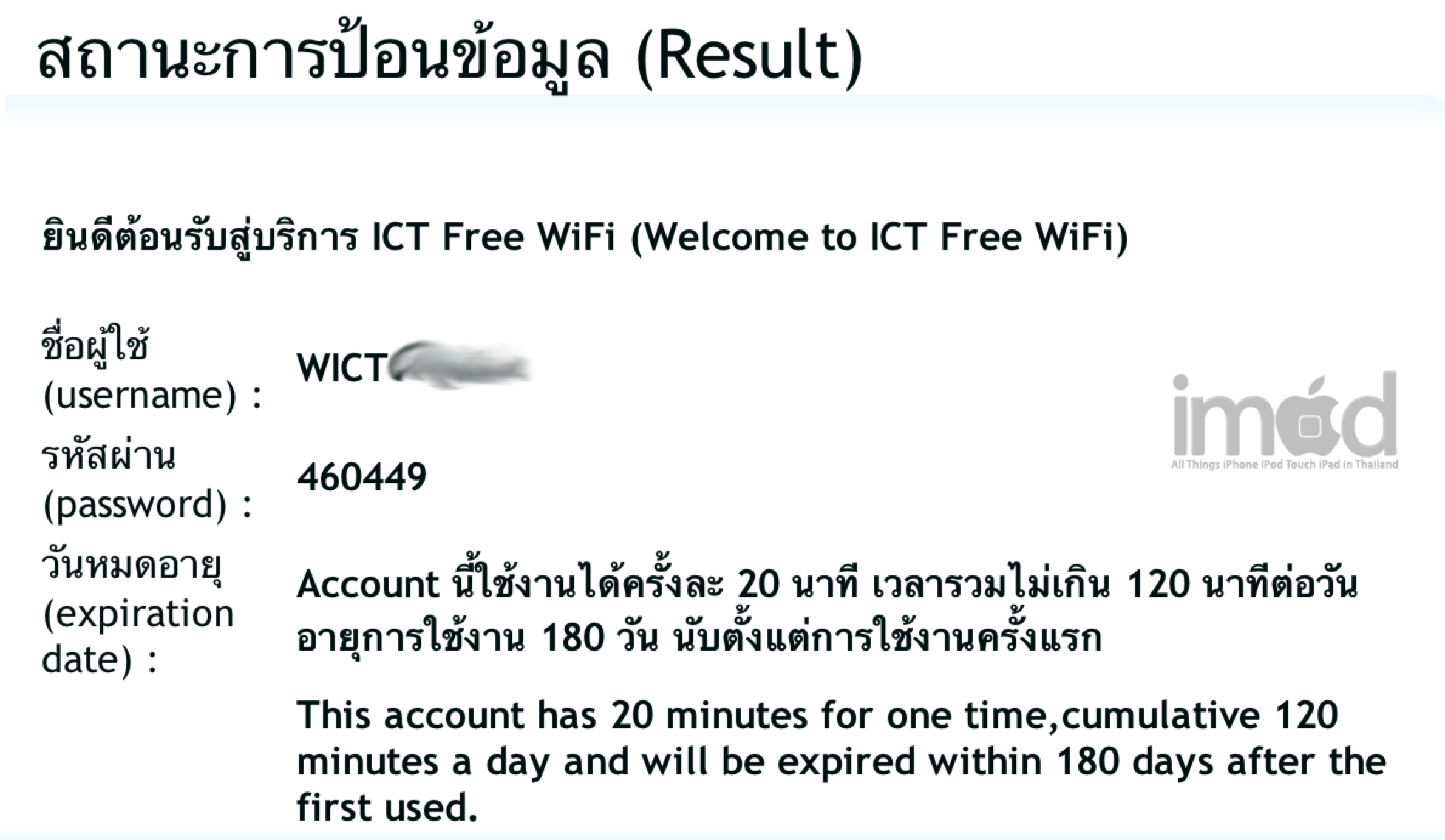 4. กรอกเสร็จคุณจะได้ Username กับ Password มาใช้ในการ login แค่นี้ก็เรียบร้อย ง่ายนิดเดียว